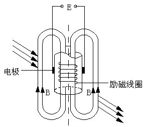 插入式電磁流量計傳感器實際上是一種液體流速測量儀表。它是應用法拉第電磁感應定律的原理制成的流速測量儀表。下圖是插入示電磁流量計基本工作原理的示意圖。用一個長桿將一個小的電磁流量傳感器插入到被測量管道中規定的位置,導電流體垂直流過傳感器的工作磁場時(轉換器向傳感器提供勵磁電流時,在勵磁線圈構成的勵磁系統中便產生工作磁場),相當于導體在磁場中作切割磁力線運動。根據法拉第電磁感應定律可知,在導體的兩端產生感應電動勢。此感應電動勢由接觸流體的一對電極來檢測。電動勢的大小與磁感應強度B、兩極間距離L和流體的平均流速呈正比。即