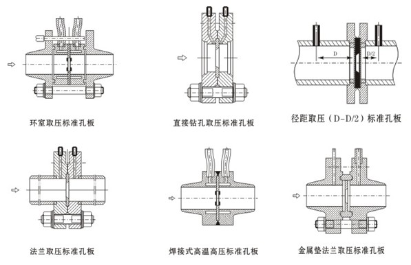 ②各種標準孔板流量計的結構簡圖