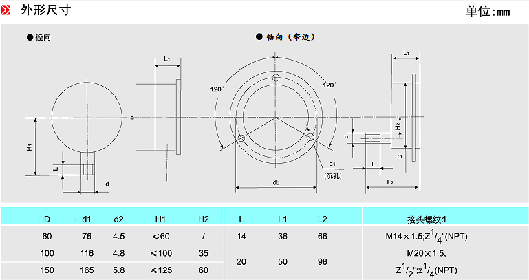 不銹鋼壓力表外形尺寸參考介紹: