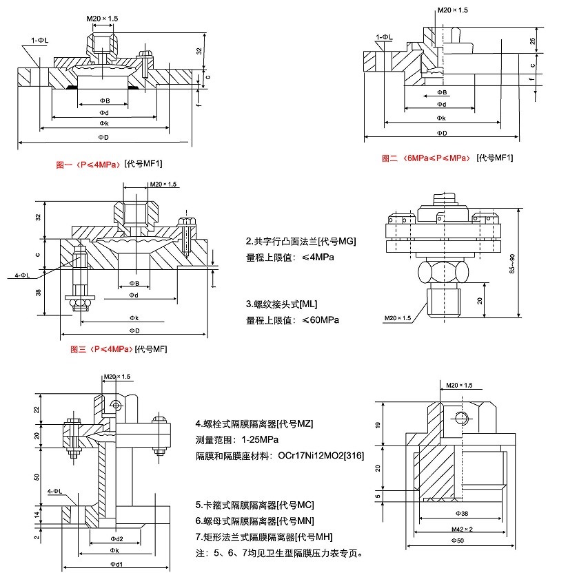 四、隔膜壓力表儀表型式及尺寸